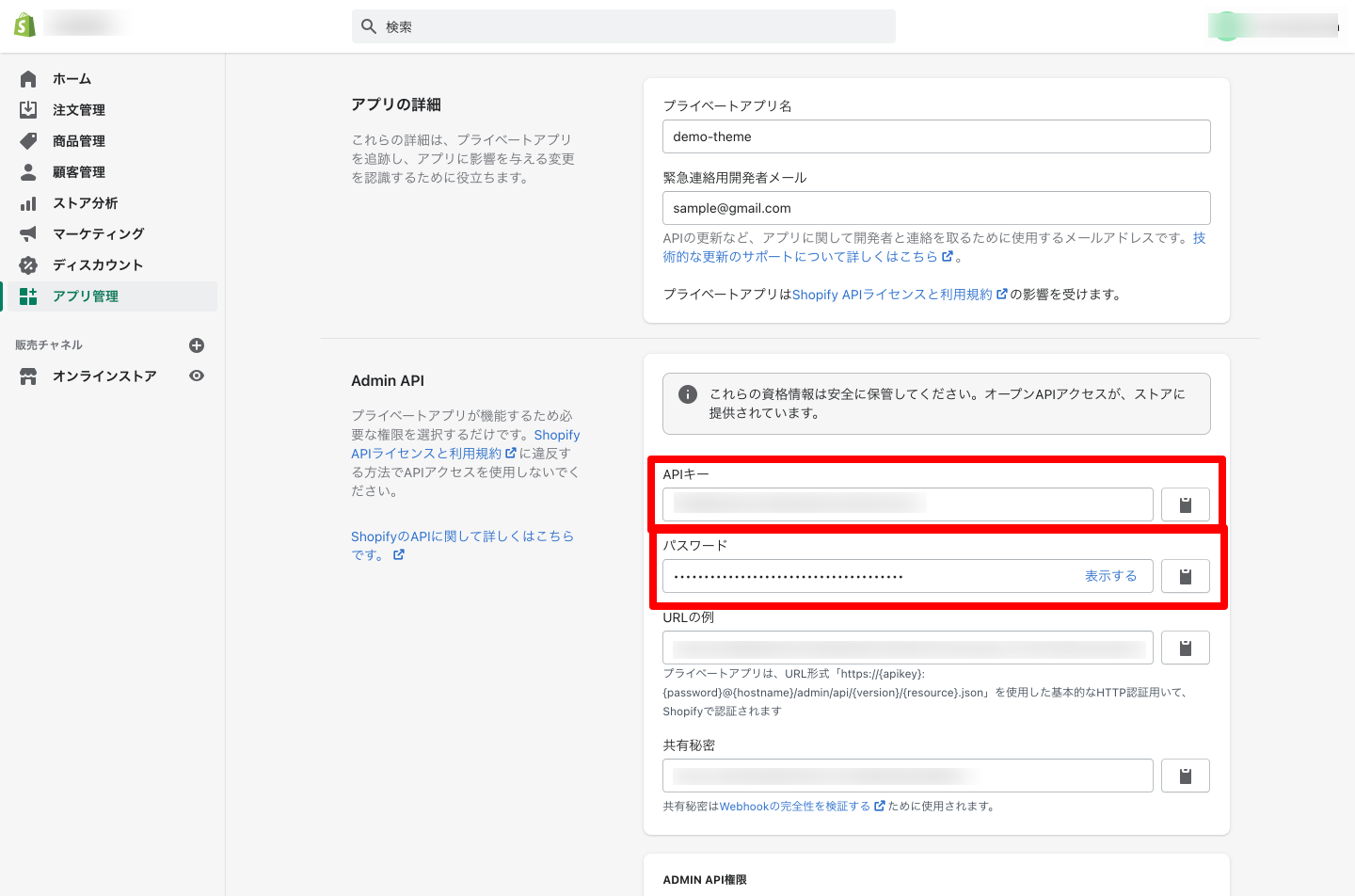 3-1.ショップの管理画面からapiキーとパスワードを取得