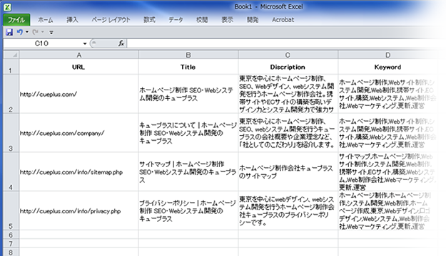 その際に1ページづつmeta情報をソースからコピペしてエクセルに貼付けたりするのですが結構時間もかかりますしめんどくさいですよね。