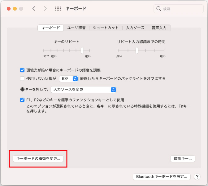 システム環境設定 > キーボード > [キーボードの種類を変更]